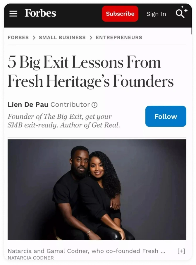 Gamal Codner is an entrepreneur and investor who has founded six profitable businesses, acquired equity in two, and successfully exited two, including Fresh Heritage, the brand he grew to multiple seven figures in just four years before selling to a $250M global private equity firm.